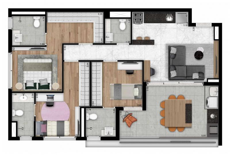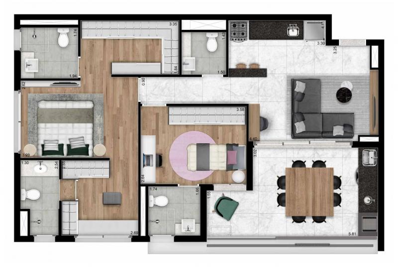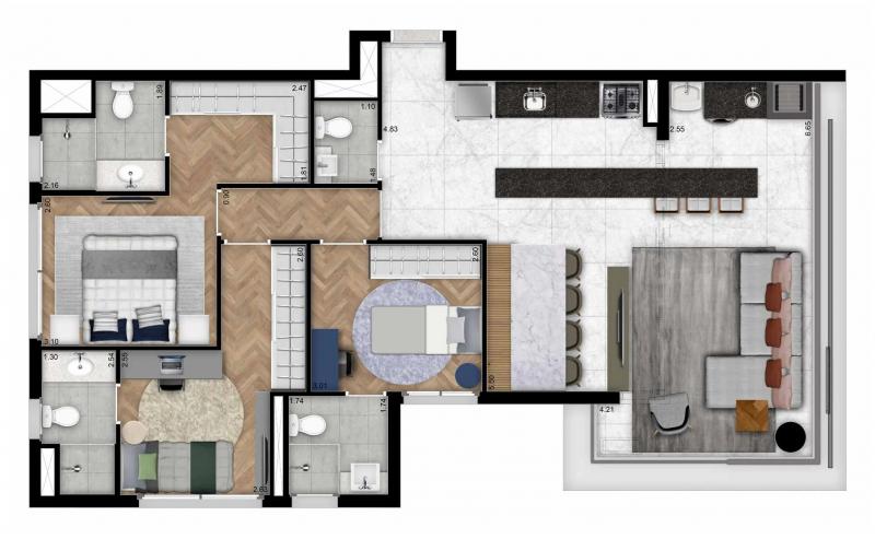 Residencial Studios, 01 Dorm., 02 e 03 Suítes