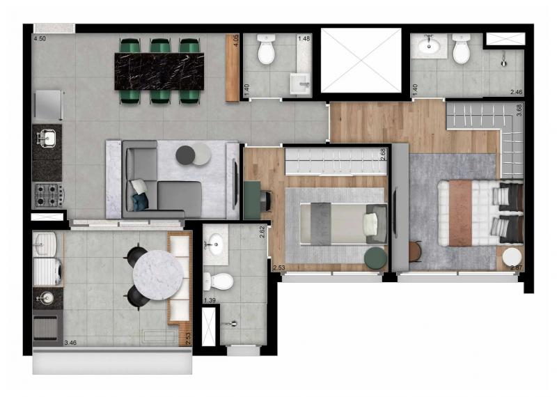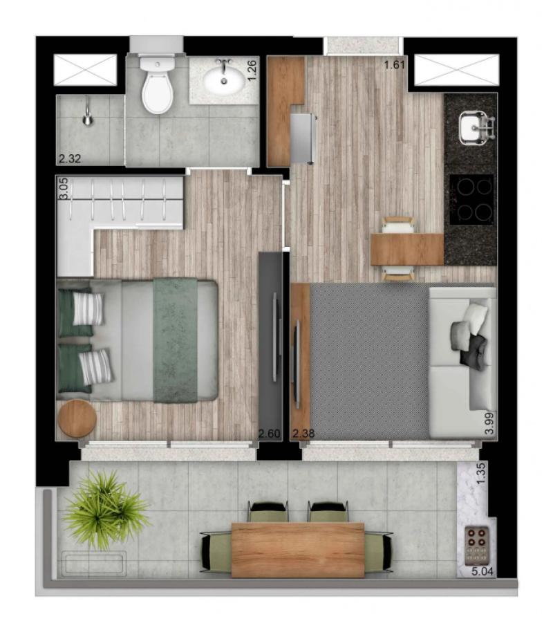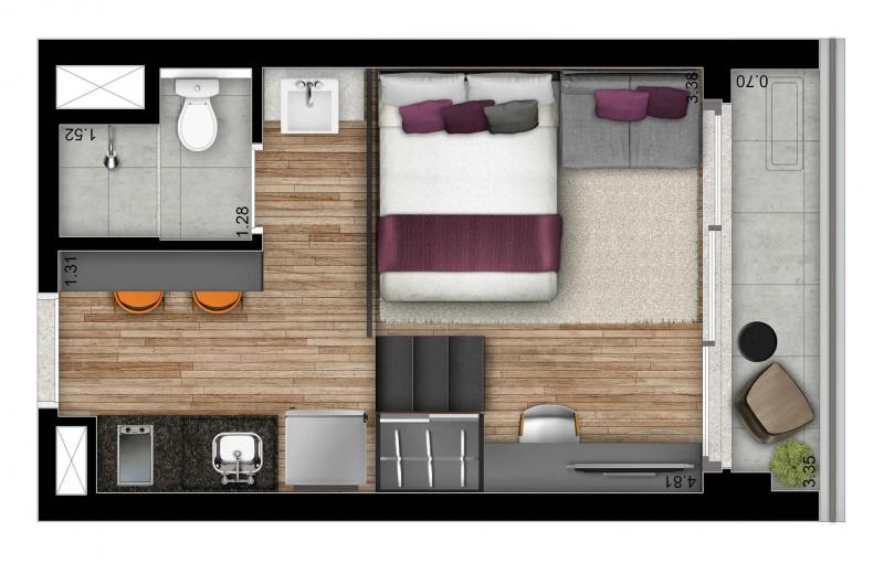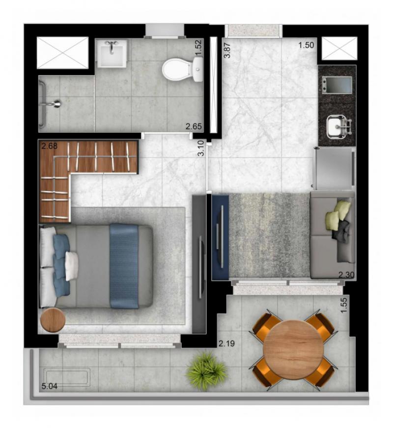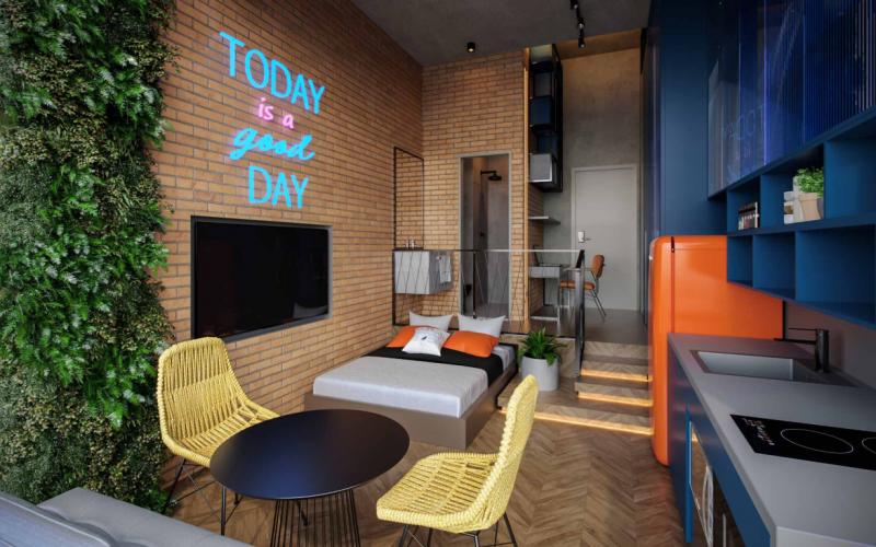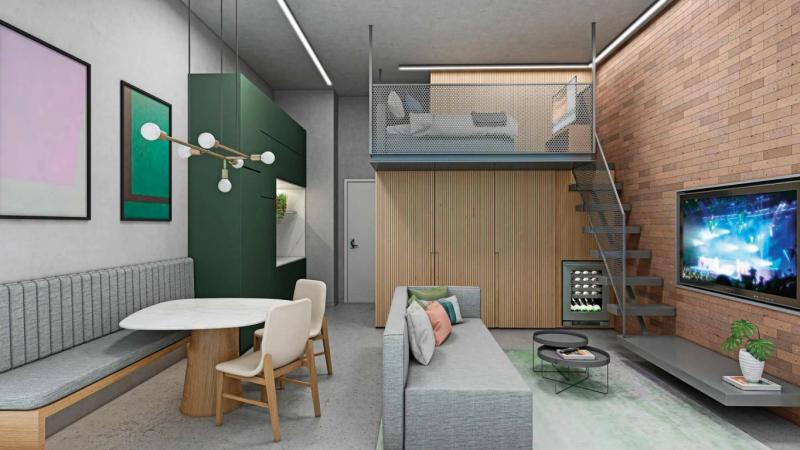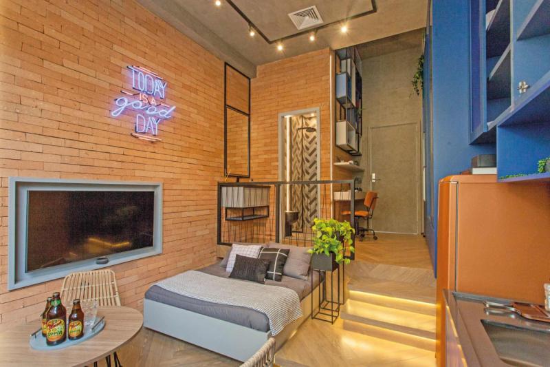 01 Dormitório e Studios com pé-direito de 3,70 m