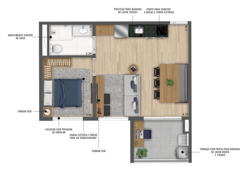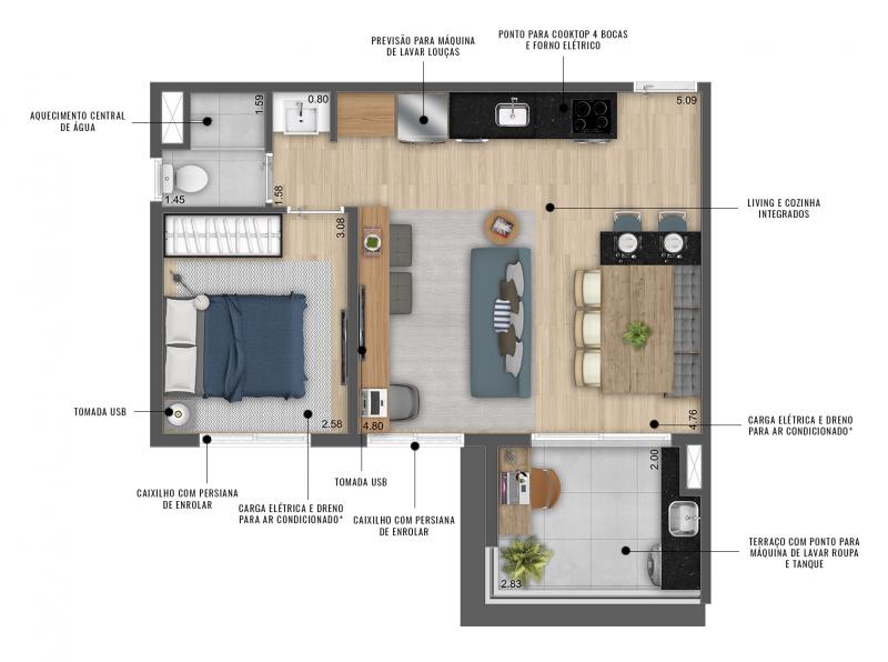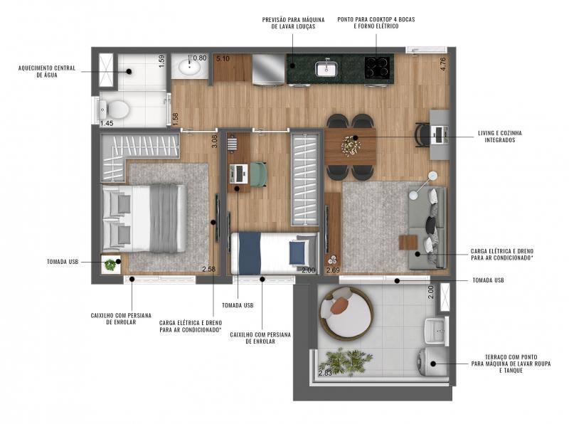 02 – Unidades 01 Dormitório NR – 46,29 m²