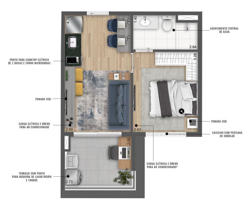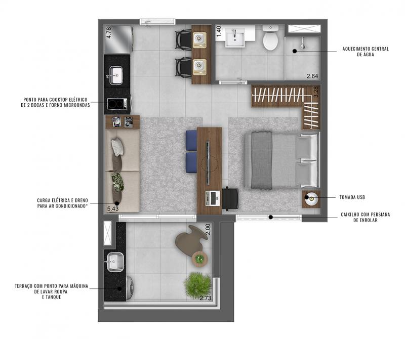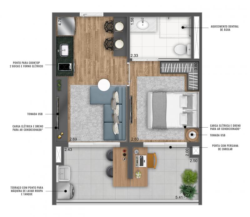 39 – Unidades 01 Dormitório R – 35,06 m²