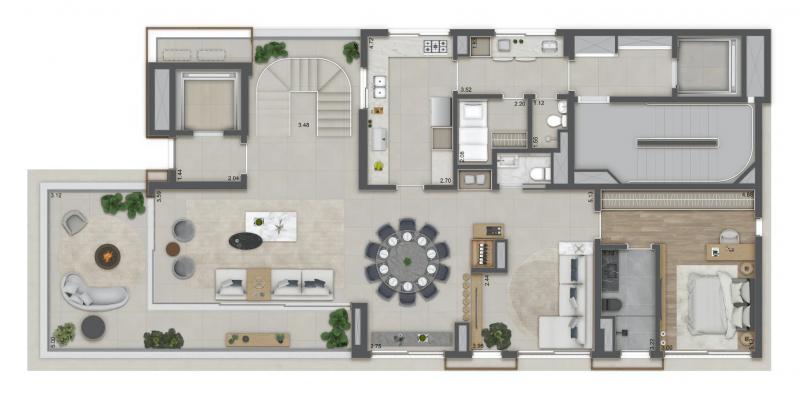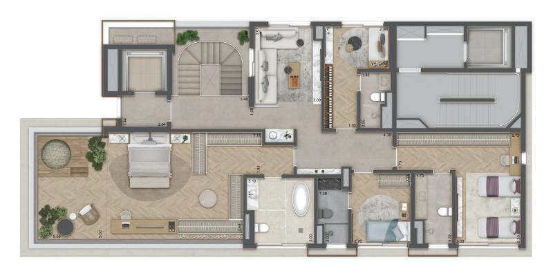 Planta opção junção: 370 m² / 05 Suítes / 04 Vagas de garagem