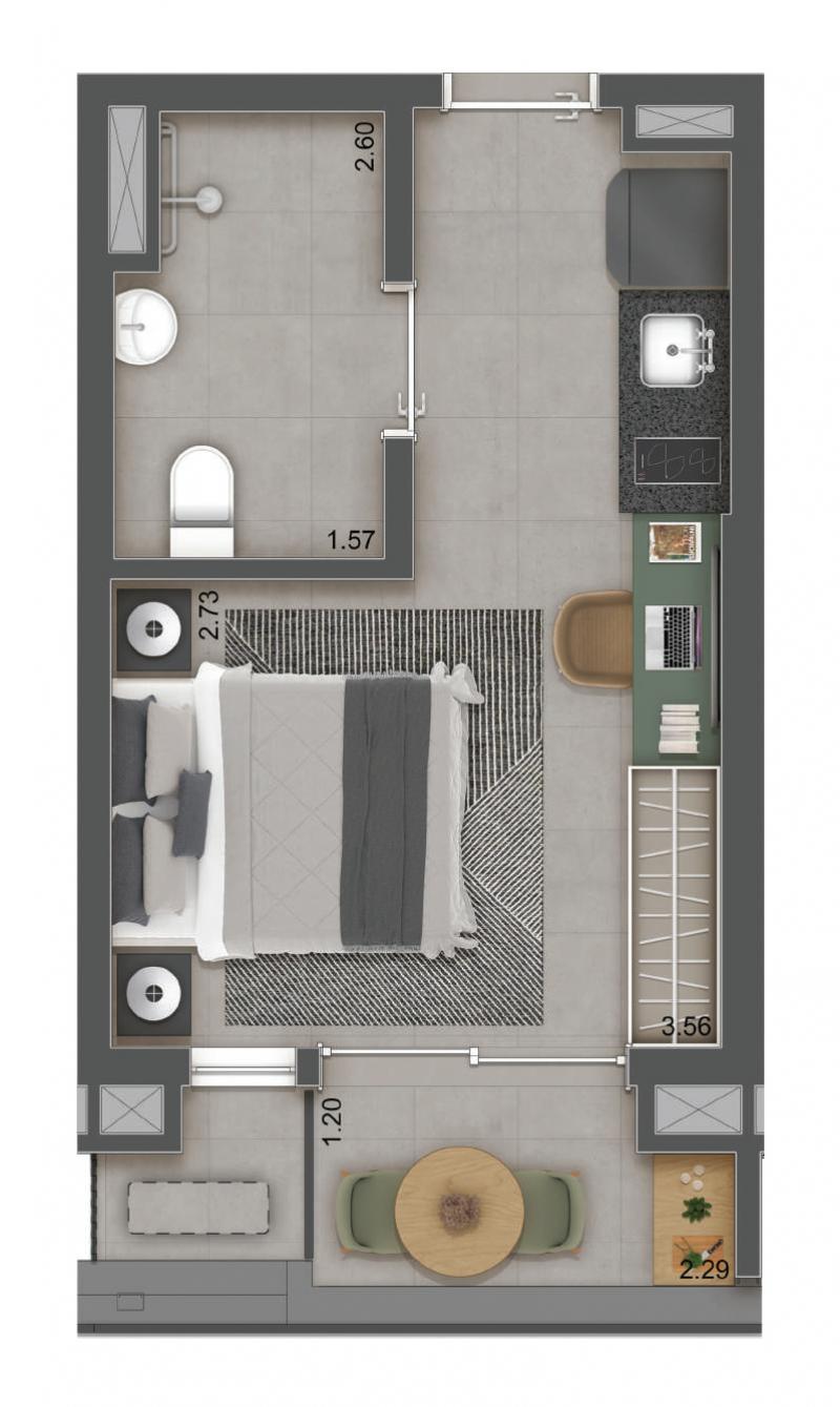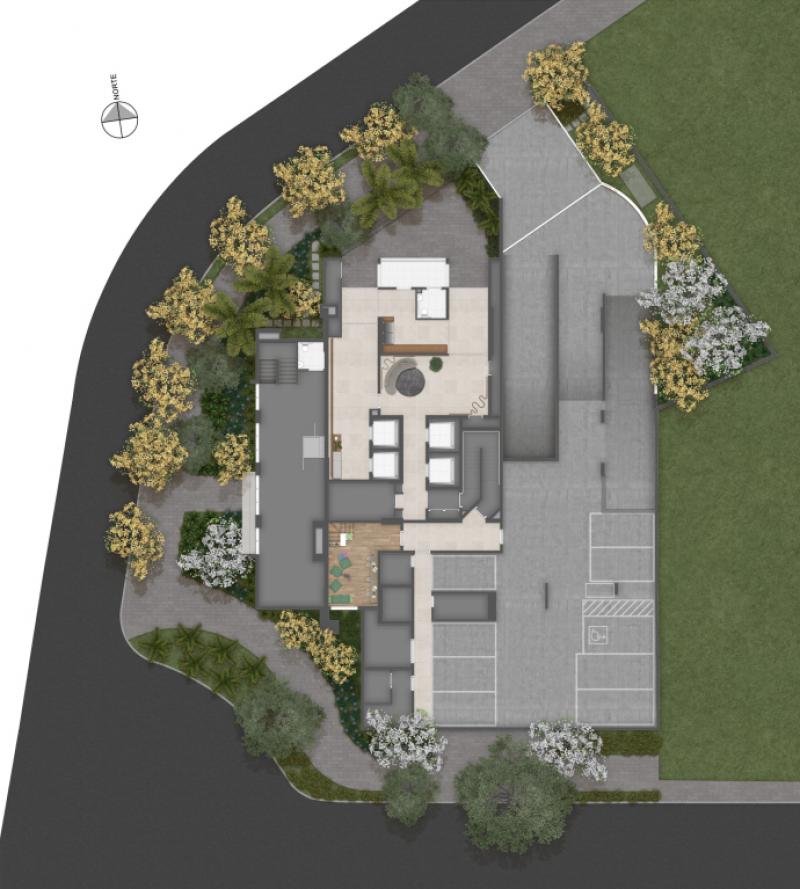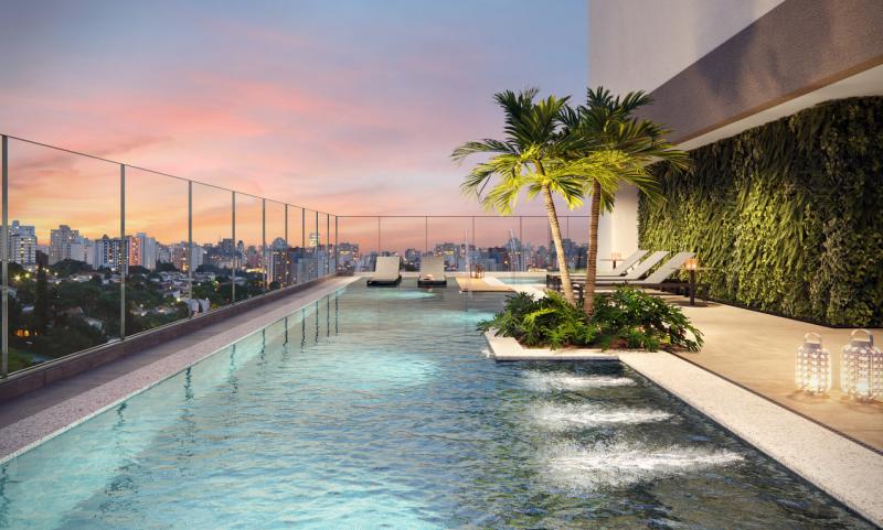 N° de pavimentos: 02 Subsolos + Térreo + 01 Pav. com Garagem e Bicicletário + 02 Pavs. Studios NR + 03 Pavs. Studios Residenciais + 01 Pav. de Lazer para Studios Residenciais e de Lazer das Unidades Residenciais + 18 Pavs. Unidades Residenciais + Cobertura Lazer Residencial