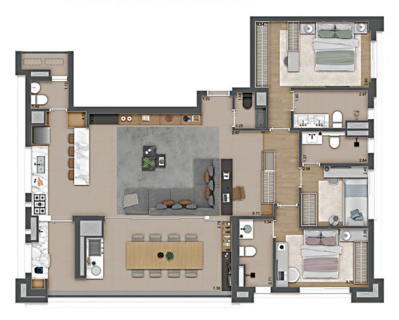 04 – Dormitórios 127 m² / 02 Vagas de garagem