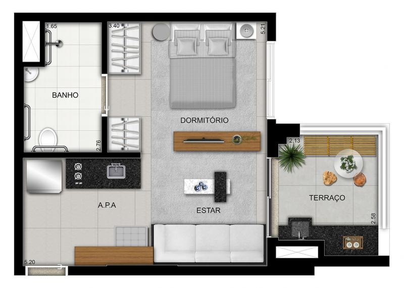 Área privativa: 24, 28, 31, 33, 36, 37, 53, 62, 63 m²