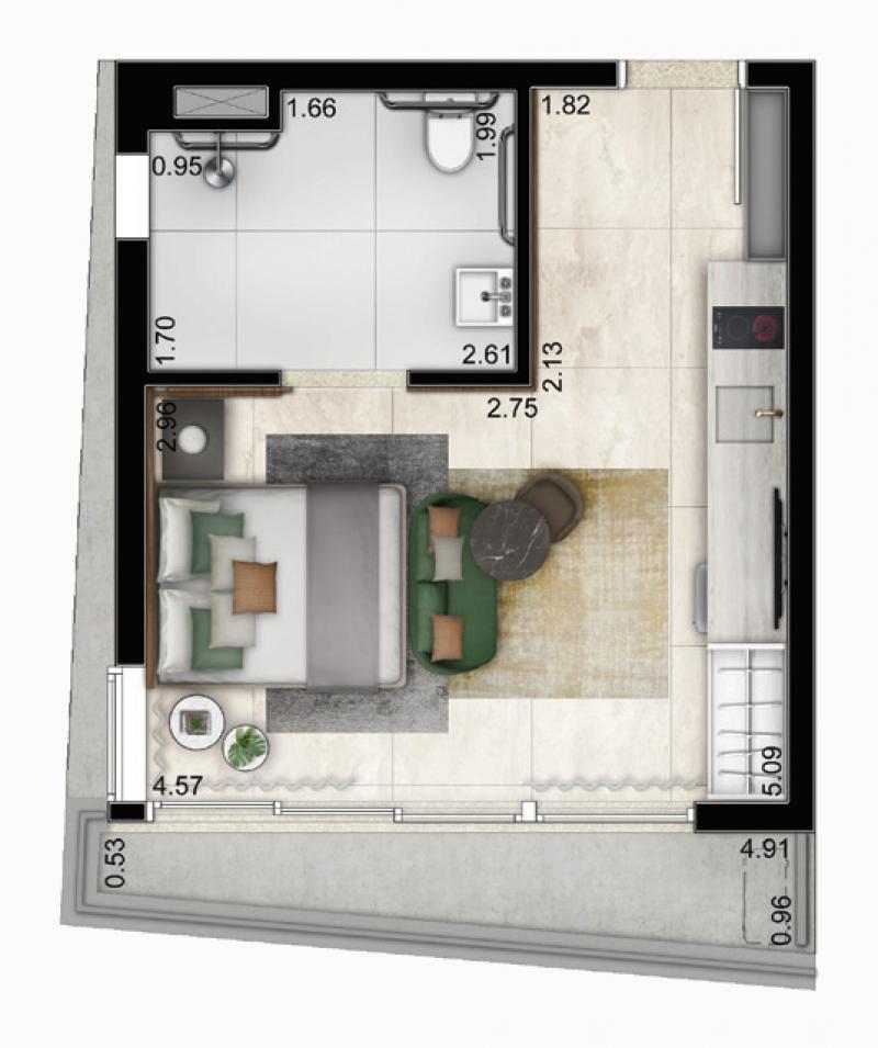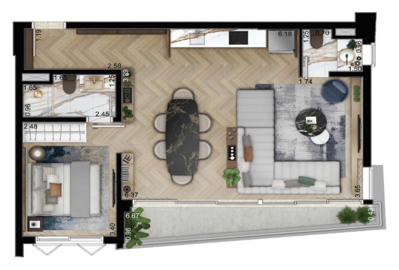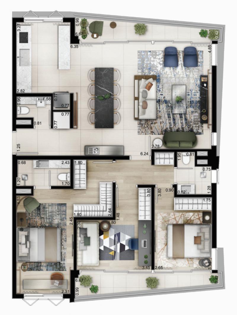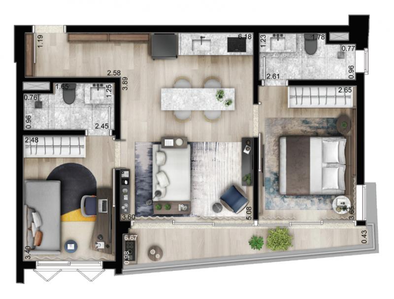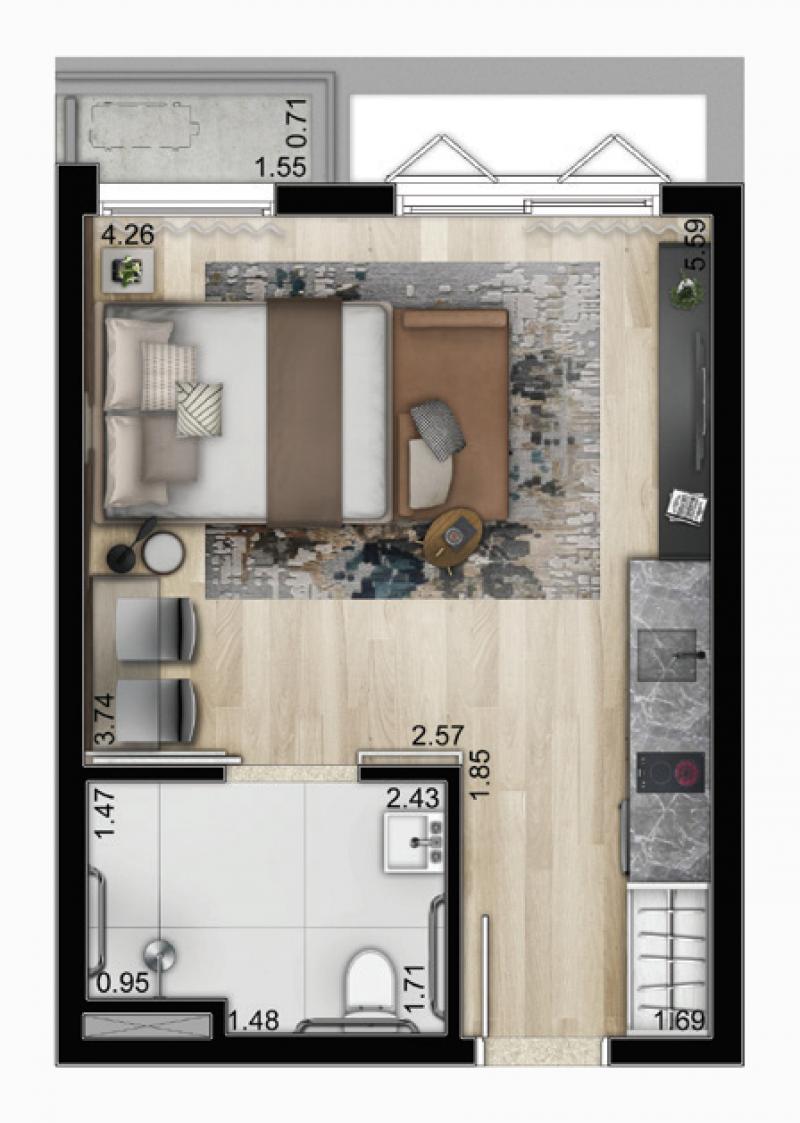 Varanda proporcional ao apartamento; você ganha espaço sem perder área