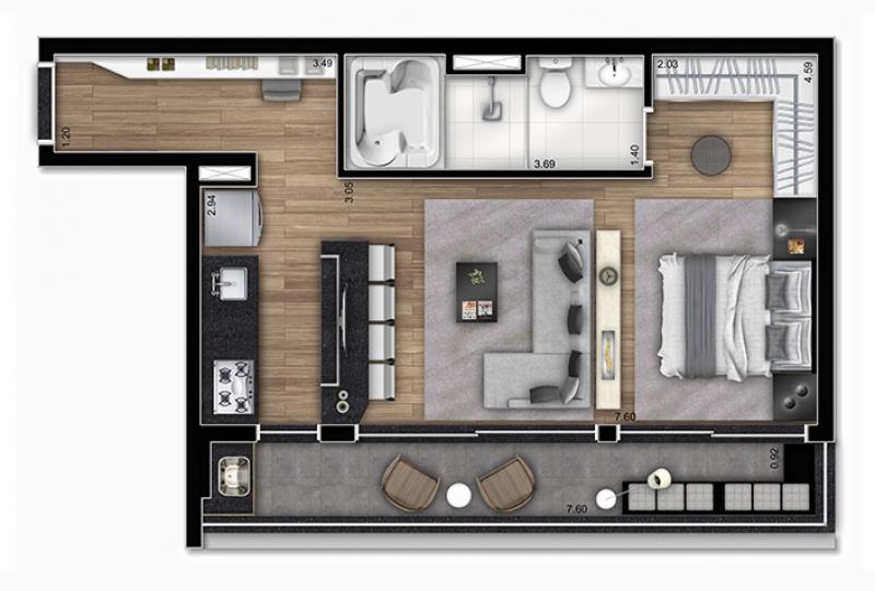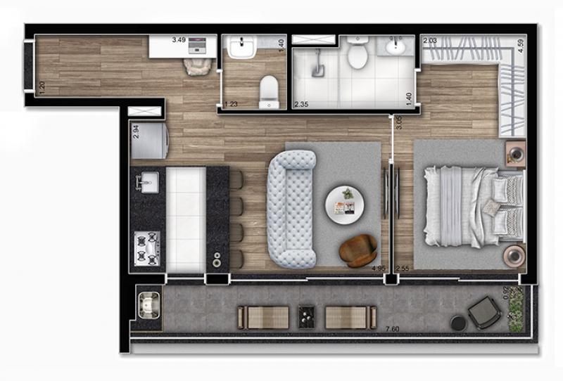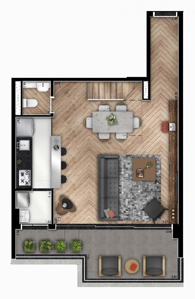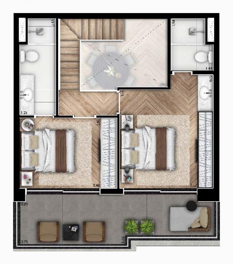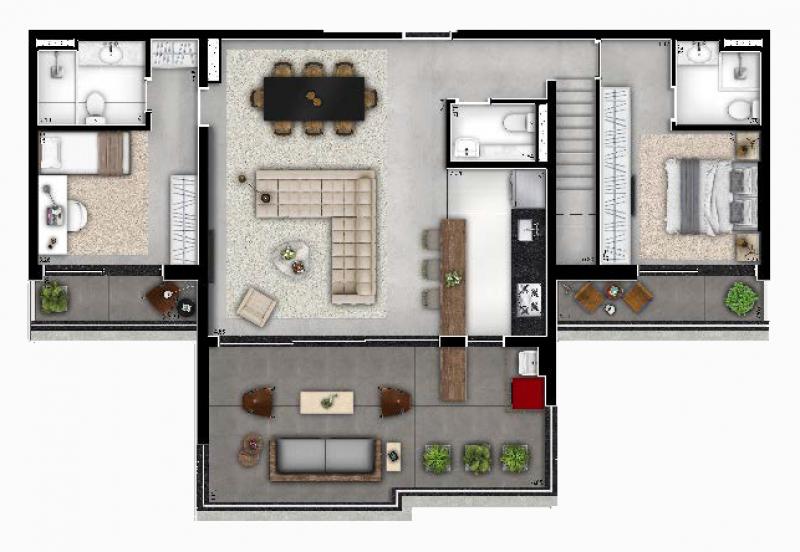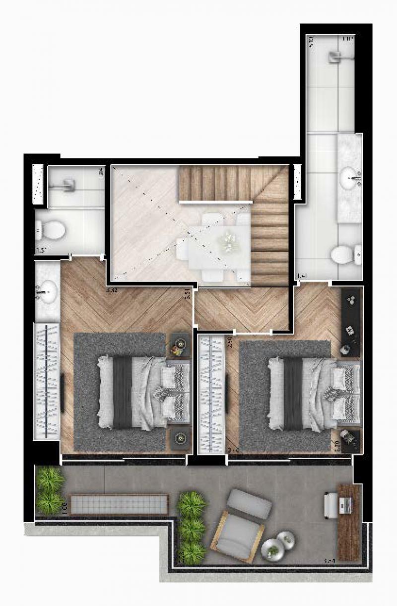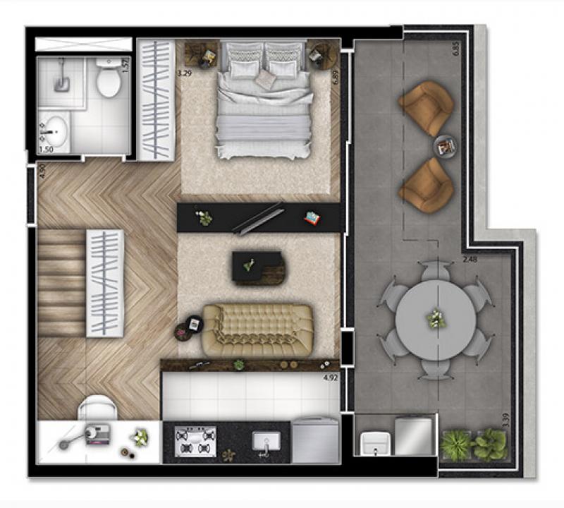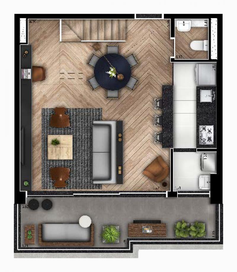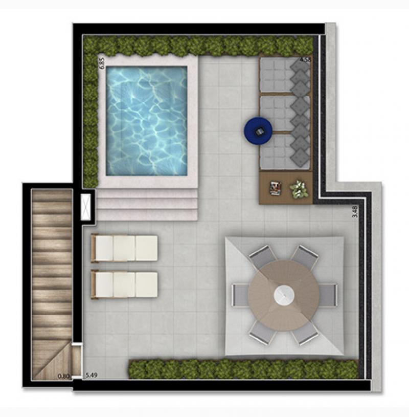 Cobertura de 91 m² a 98 m² – 01 dorm.