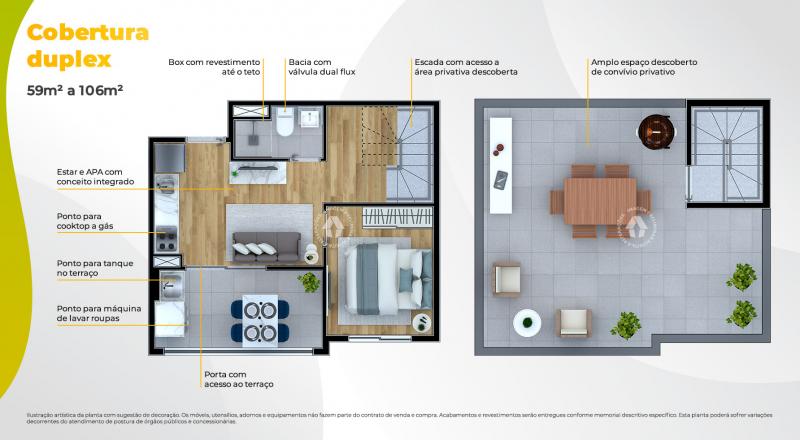 Cobertura Duplex – 59 m² a 106 m²