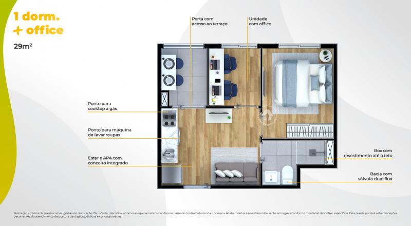 01 Dormitório + Office – 29 m²
