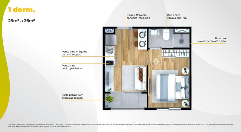 01 Dormitório – 25 m² a 36 m²