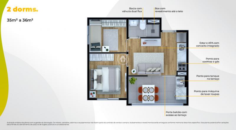 02 Dormitórios – 35 m² a 36 m²