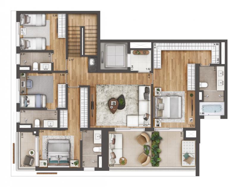 Duplex: 300 m² – 04 Suítes / 03 Vagas de garagem