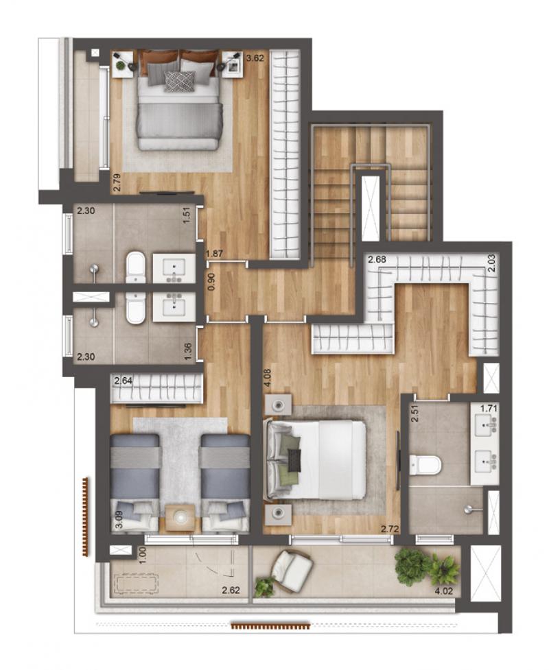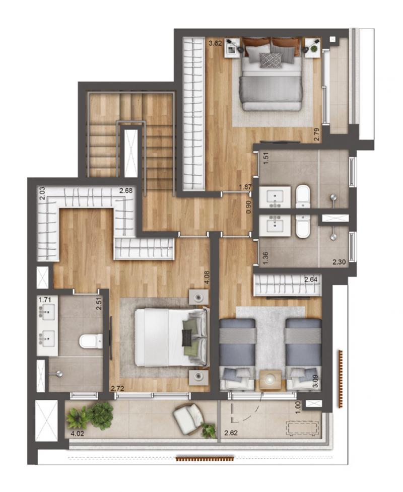Duplex: 185 e 205 m² – 03 Suítes / 02 Vagas de garagem