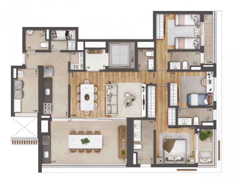 147 m² – 03 Suítes / 02 Vagas de garagem