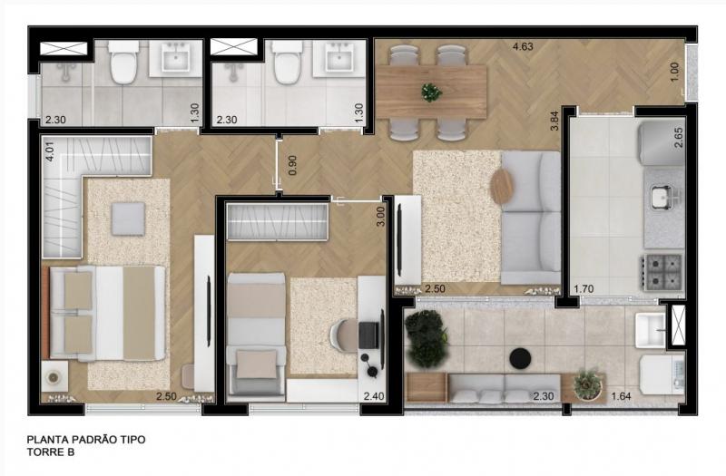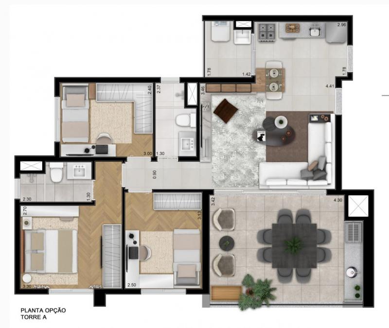 Torre A – 03 Dormitórios (1 Suíte) – Terraço com Churrasqueira