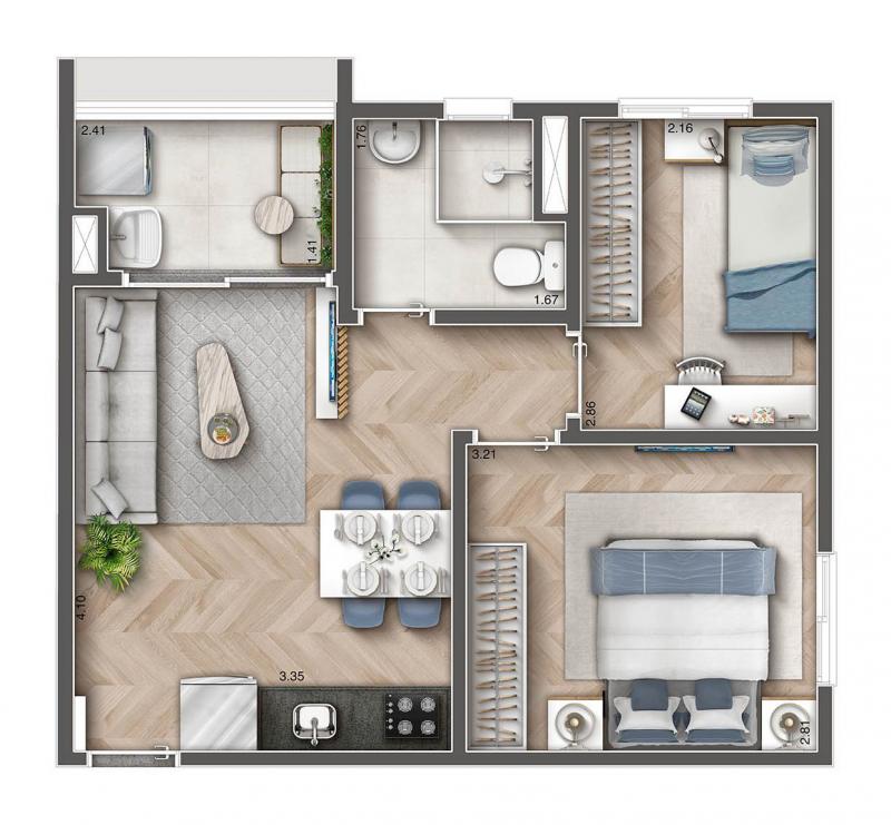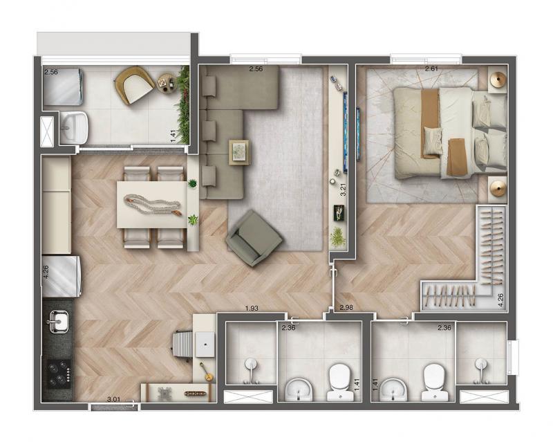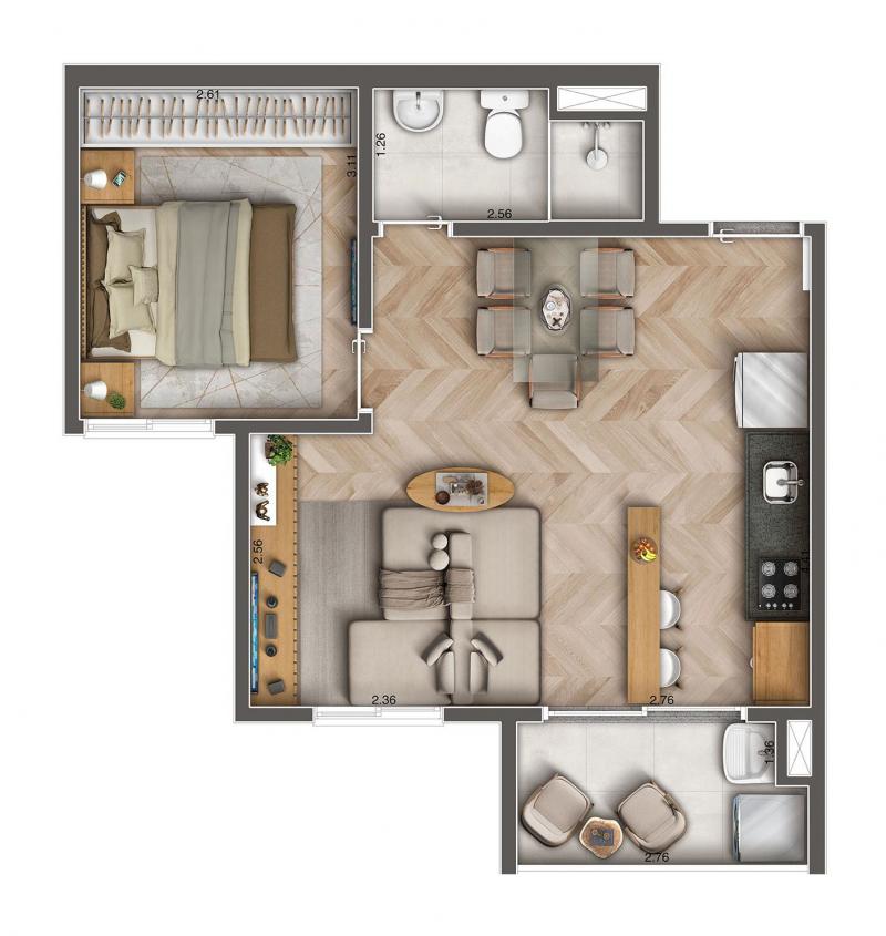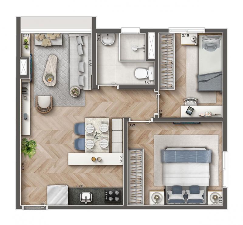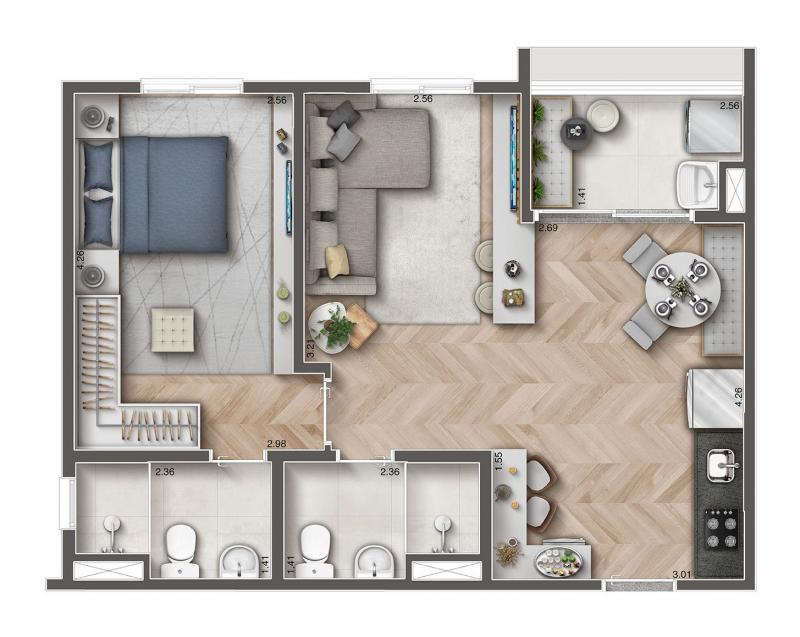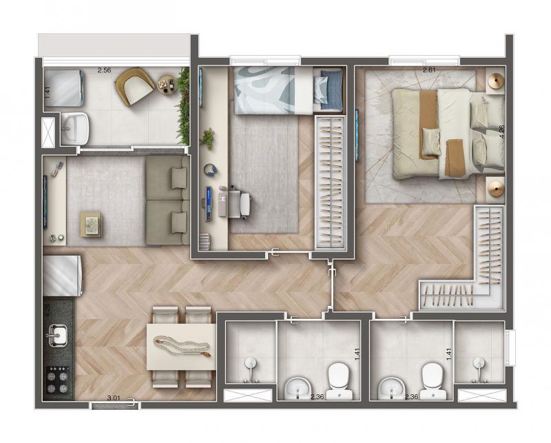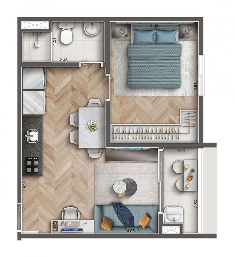 02 Dormitórios c/ Suítes – 41 e 49 m²