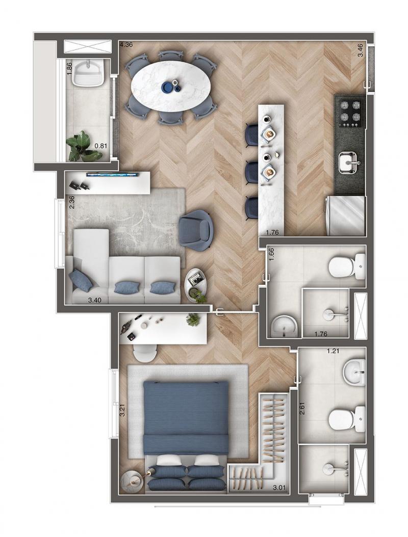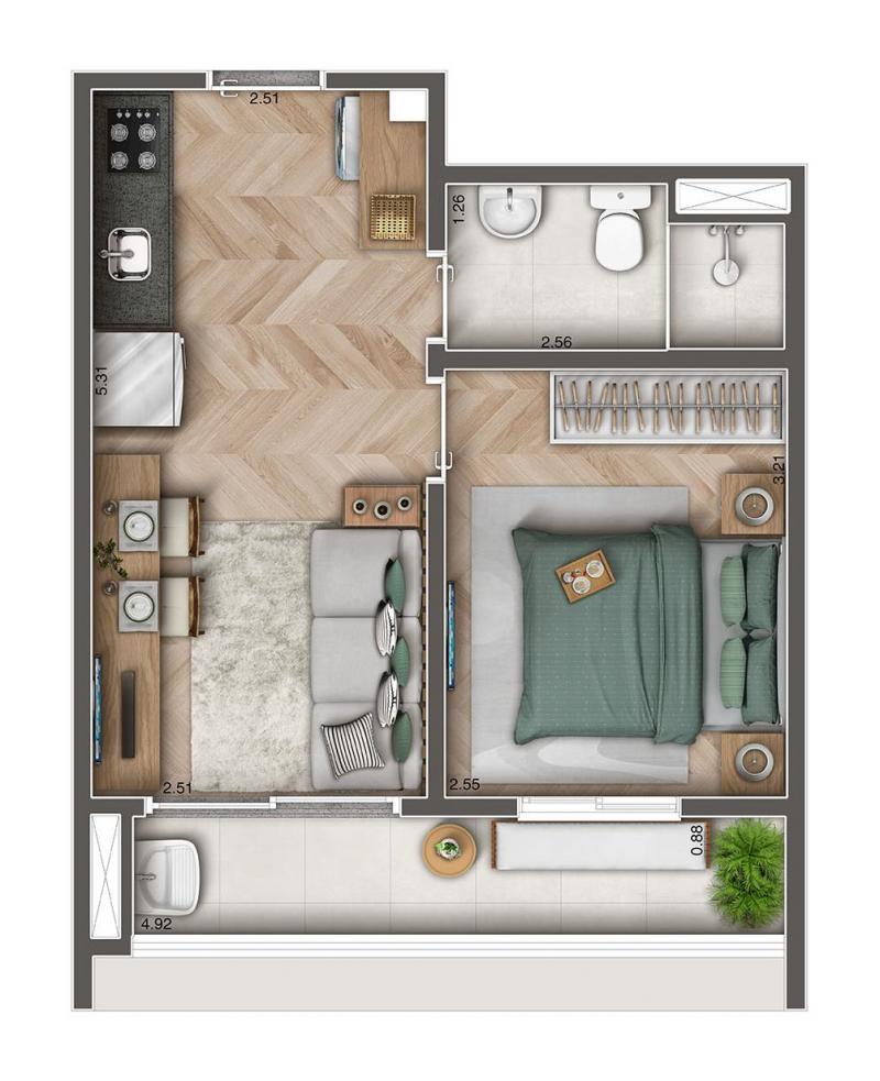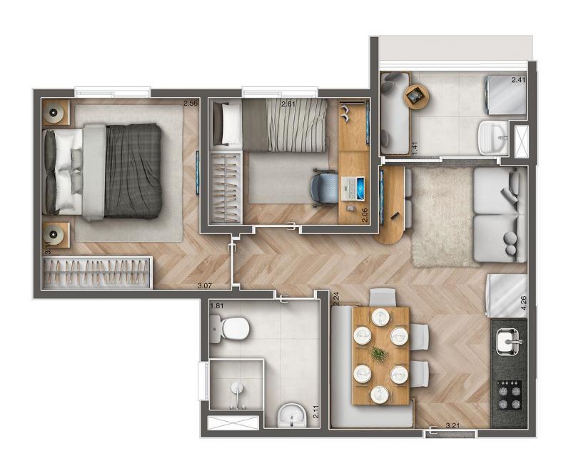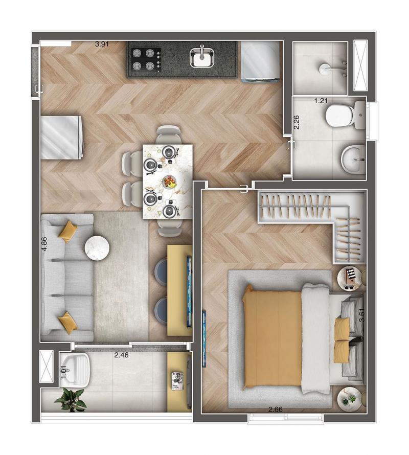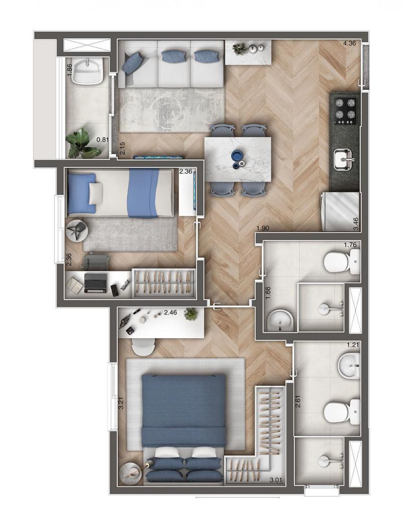 02 Dormitórios c/ Suítes – 41 e 49 m²