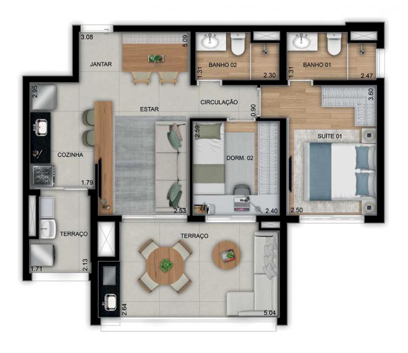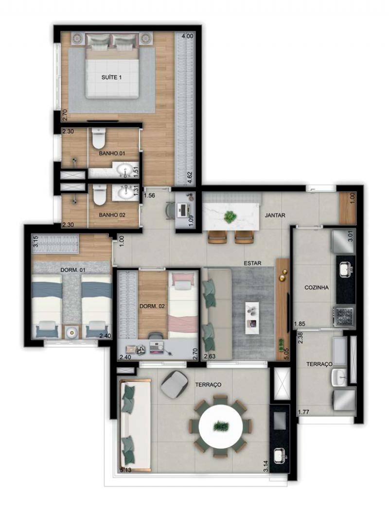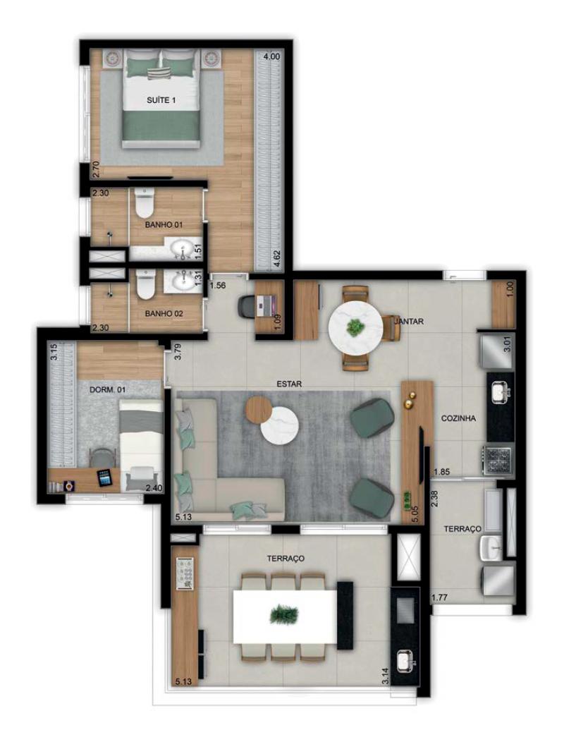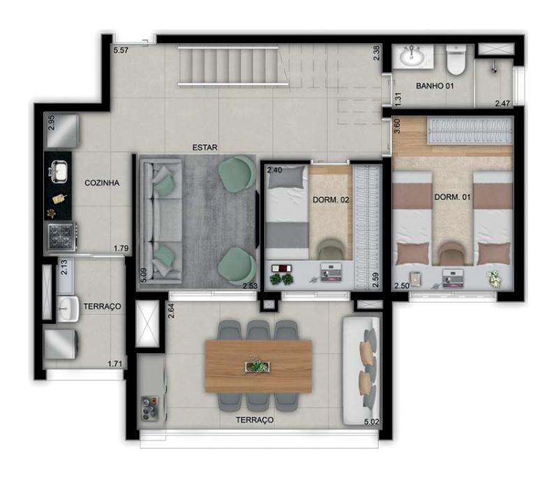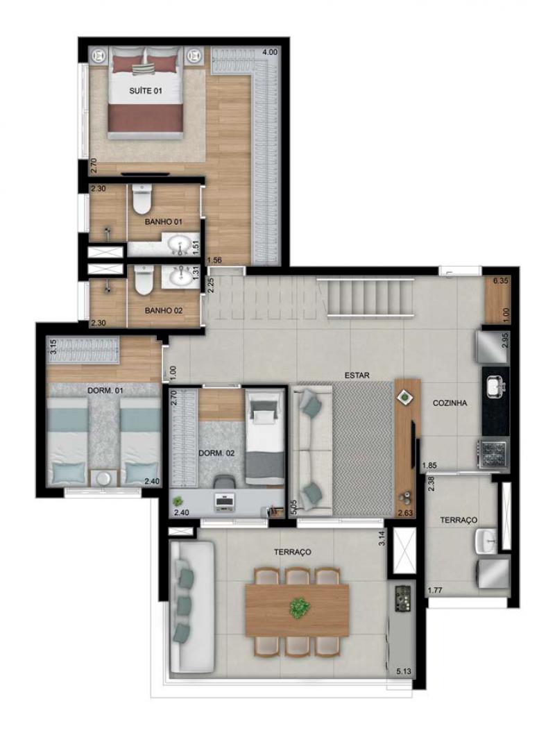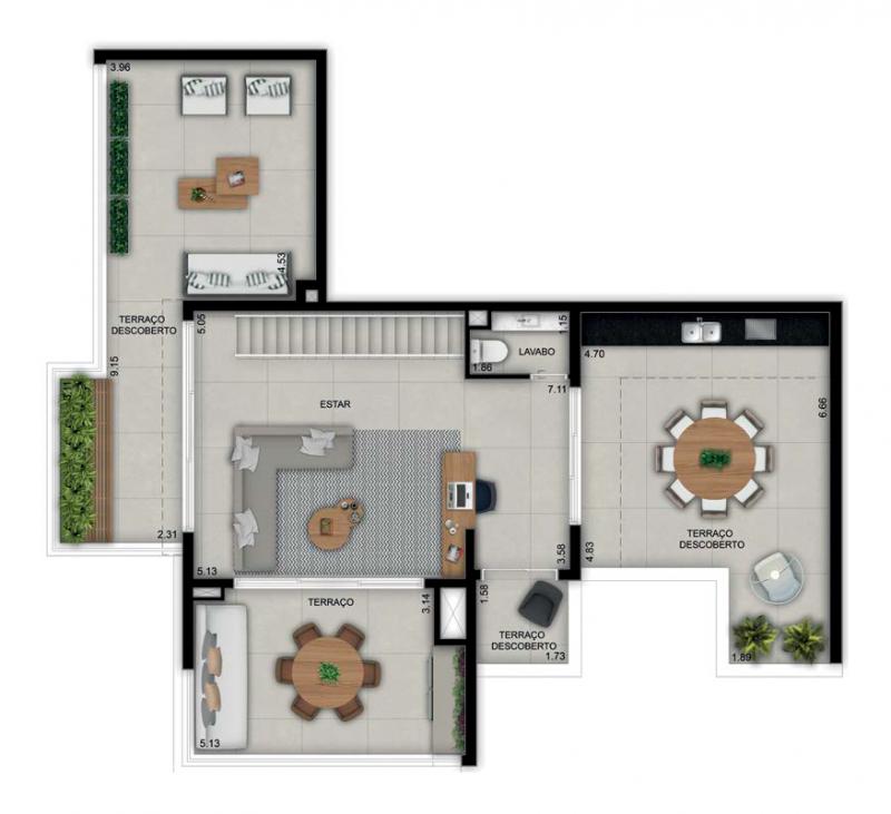 Duplex: 159 m², 161 m², 214m² e 215 m²