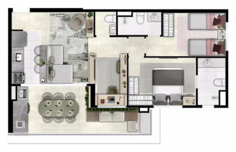 Apartamentos de 02 e 03 dormitórios (1 Suíte)