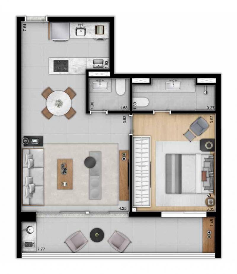 Studios: 33, 42 e 55 m² / 01 vaga e sem vaga de garagem