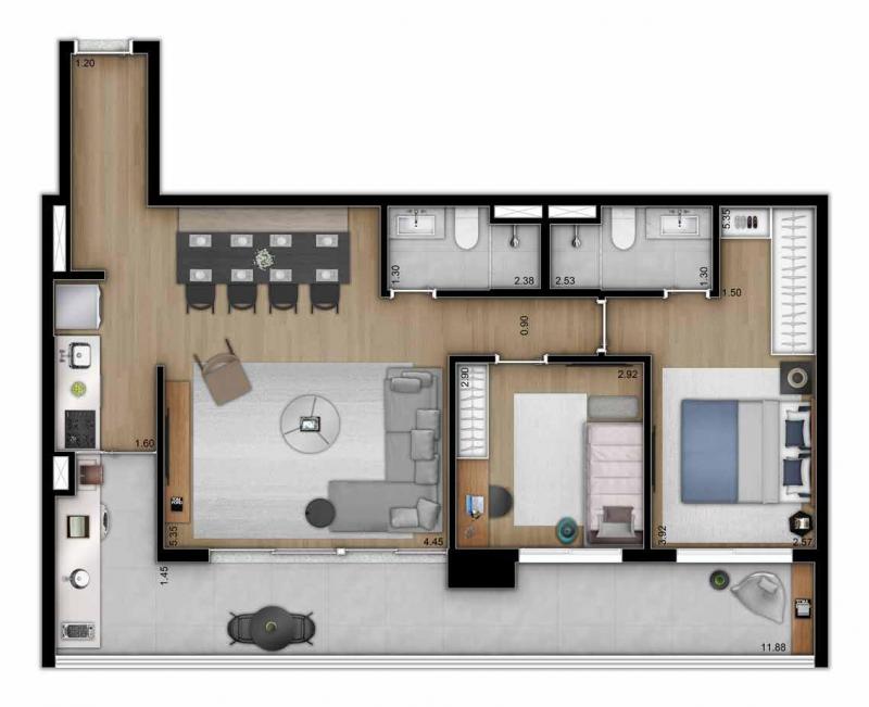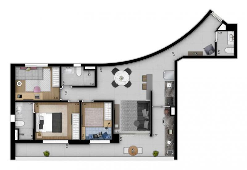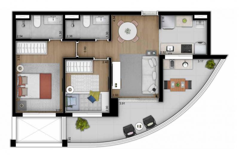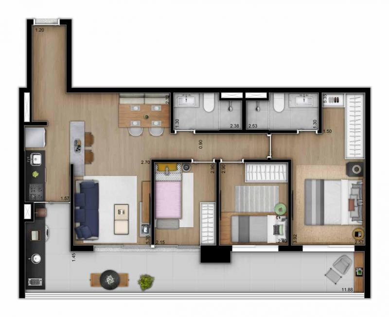 03 Dormitórios: 87, 90, 91, 93, 94 e 106 m² / 02 vagas de garagem determinadas
