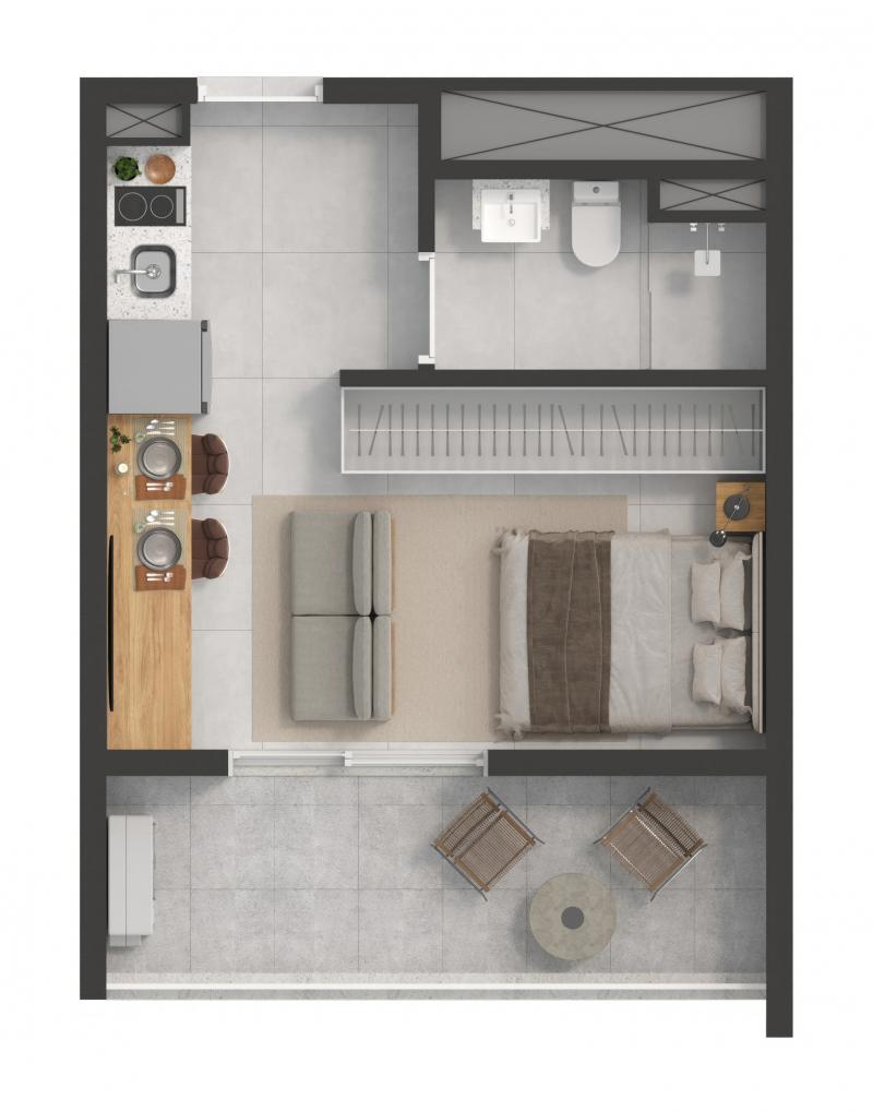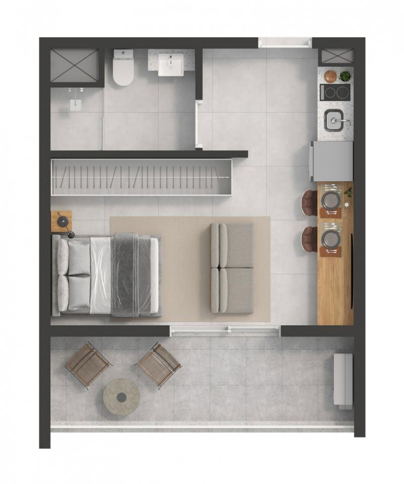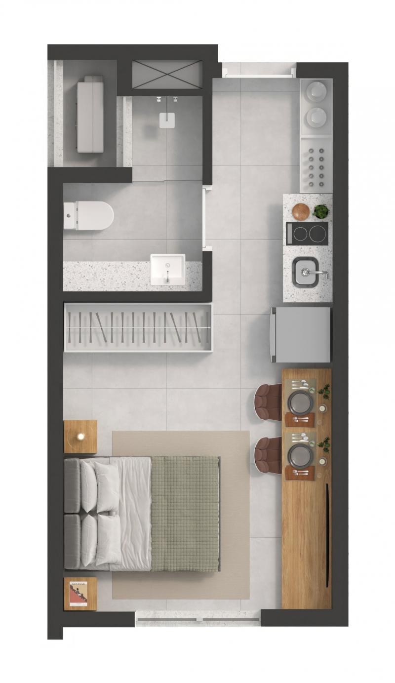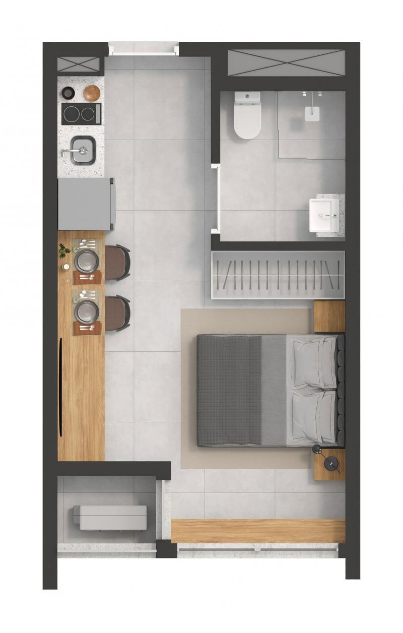 Área privativa: 18 a 59 m²