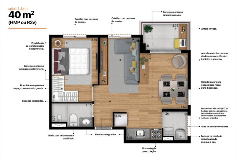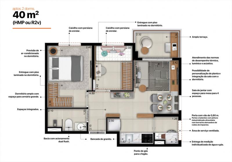 Studios, 01 e 02 Dormitórios
