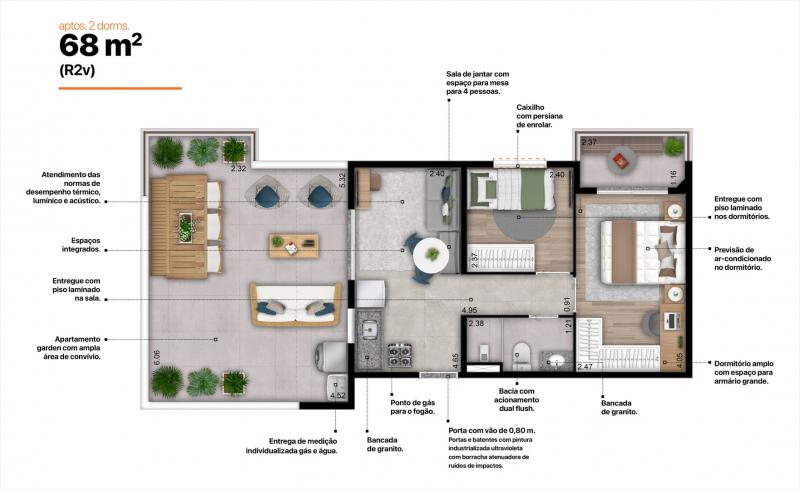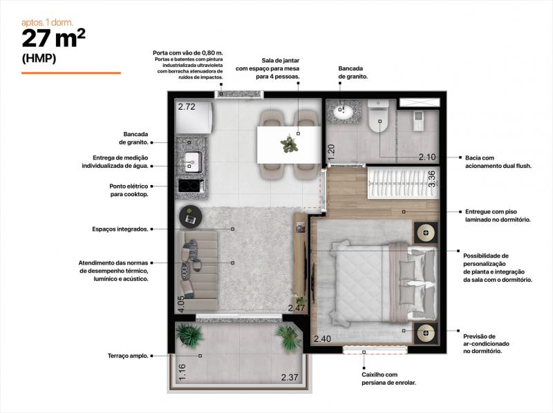 Área privativa: 27 m² a 68 m²