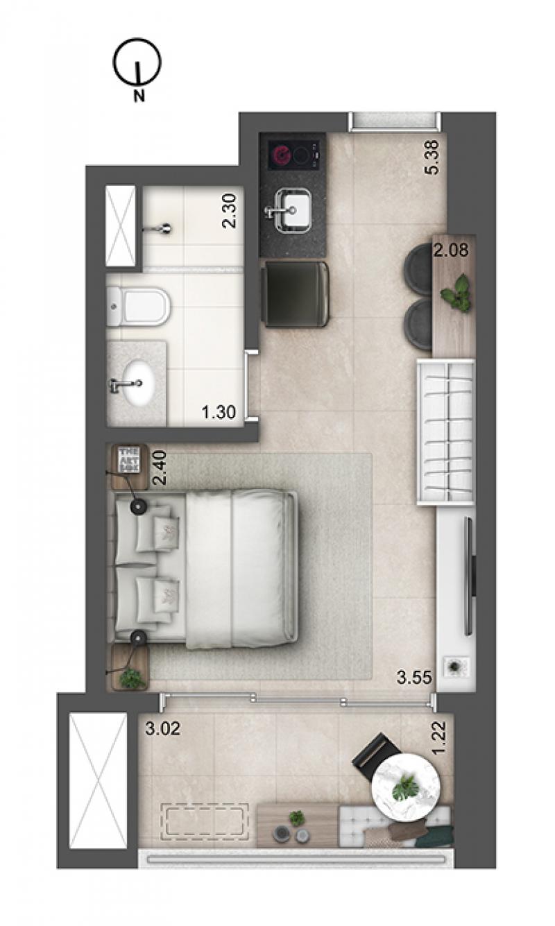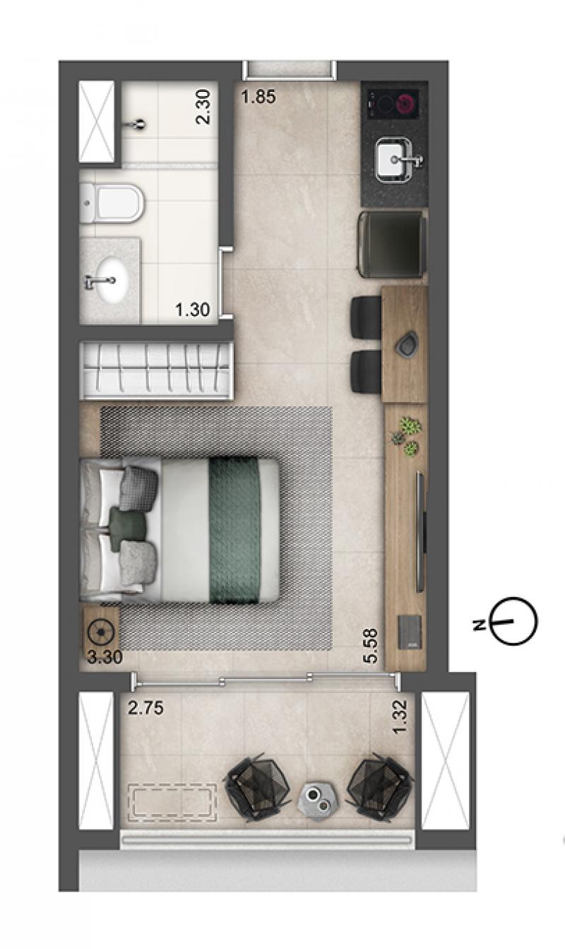 Studios, 01 a 03 Dormitórios