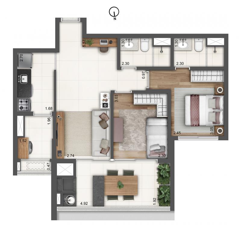 63 – Unidades de 02 dormitórios